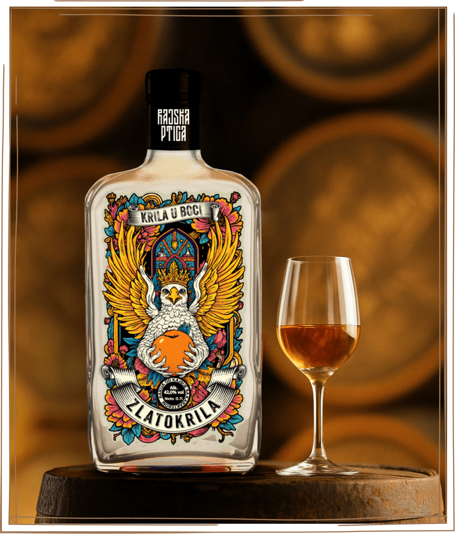 U destileriji Rajska ptica proizvodimo male serije vrhunskih rakija koje nastaju iz poštovanja prema prirodi, vremenu i zanatu. Naši brendovi, Zlatokrila (rakija od kajsije) i Modrovrana (rakija od šljive), različiti su po aromi i sirovini, ali jednaki u svom poreklu: pažljivoj selekciji, preciznoj fermentaciji i besprekornoj destilaciji.